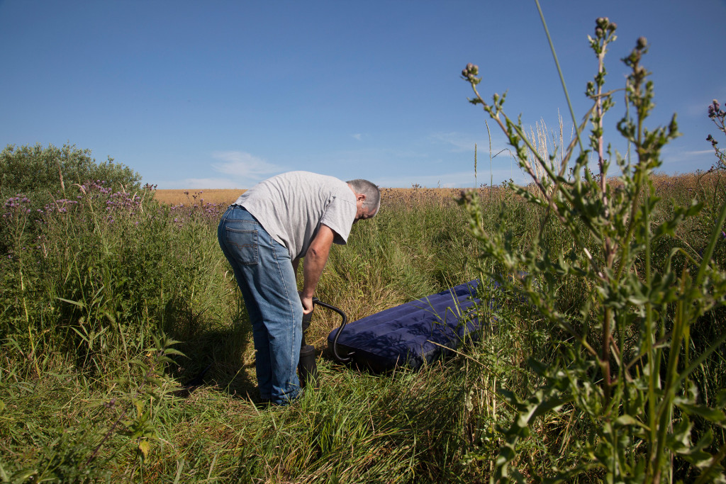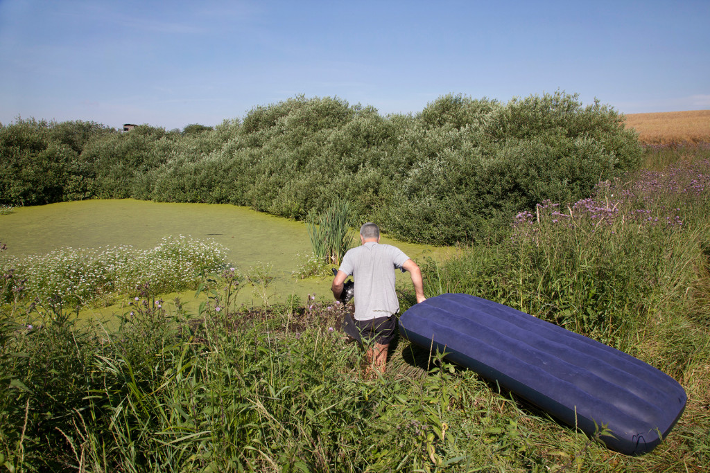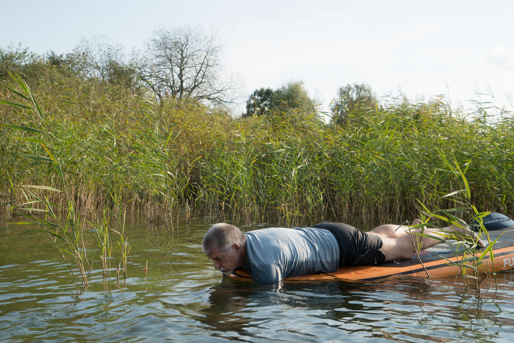Die Fotografien entstanden 2020 und 2021 in den Gewässern der Mecklenburgischen Seenplatte. Ich arbeitete dafür mit einer Unterwasserkamera, jedoch nicht auf normalen Tauchgängen sondern nach dem Prinzip des „kontrollierten Zufalls“. An Stellen, die mir aus der Draufsicht geeignet erschienen, hielt ich die Kamera ins Wasser ohne dabei das entstehende Bild im Sucher überprüfen zu können. Ein Teil der Aufnahmen wurde in flachen Uferbereichen oder Gräben realisiert, für tiefere Areale kamen schwimmende Unterlagen zum Einsatz.